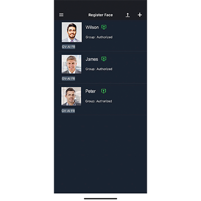 You can create face IDs for GeoVision face-recognition-based products using GV-Face mobile app, as well as receiving push notifications, viewing live recognition events, and quering event logs. GV-Face allows you to manage multiple GeoVision FR products at the same time.