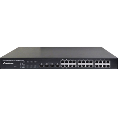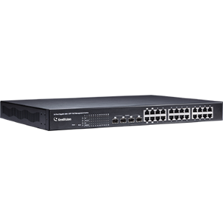 GV-POE2411-V2 is a 24-port 10/100/1000BaseT(X) PoE+ with 4 Combo SFP Rack-mount Web Smart PoE Switch. The switch supports IEEE 802.3at Power over Ethernet standard, with a maximum power consumption of 400 W. It eliminates the need for power cables to connect your powered devices (PD), such as IP cameras. The switch also provides exceptionally smart Web management features, such as VLAN, QoS, RSTP, IGMP Snooping, LACP, Port Security, and more.